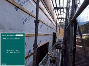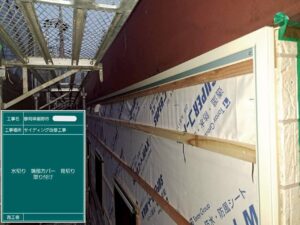 防水シートを貼り、骨組となる胴縁を取り付けます。