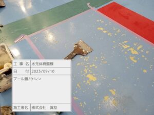 公共施設のプールは常に水が溜まっているため、防水層には大きな負担がかかっています。