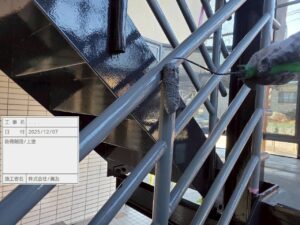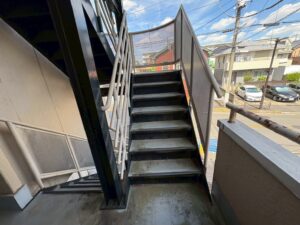 先日、葛飾区東金町のマンションにて鉄骨階段の塗装工事をしました!