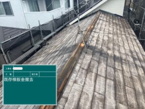 また、屋根全体だけでなく棟板金などの細かい部分も経年劣化が進行しているので棟板金を撤去するところから工事をスタートしました。