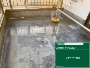 下地と防水材・塗料をしっかり密着させるためにプライマーを塗布します。