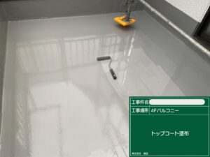 美観を整えるトップコートを塗らないと防水層はすぐに劣化してしまいます。