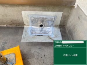 ☆葛飾区☆江戸川区南小岩にてバルコニー防水工事〈ドレン改修工事〉
