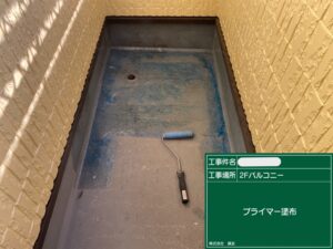 施工後は見えなくなる部分ですが、塗りムラがあると剥がれの原因に繋がるため丁寧に均一に施工することが大切です。