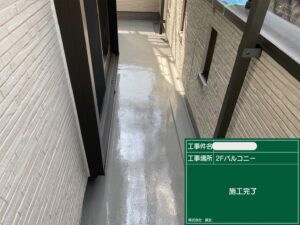 ウレタン防水は紫外線に弱いためトップコートで防水層の劣化を防ぎ、耐久性を大きく向上させます。美観も整い、ツヤのあるきれいな仕上がりになります😄