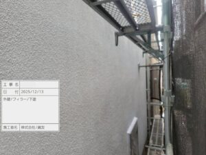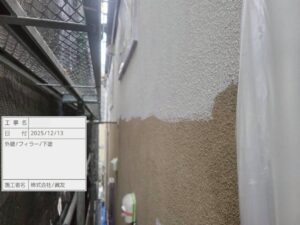 外壁表面の凹凸をならし、細かいひび割れを埋める役割があります。