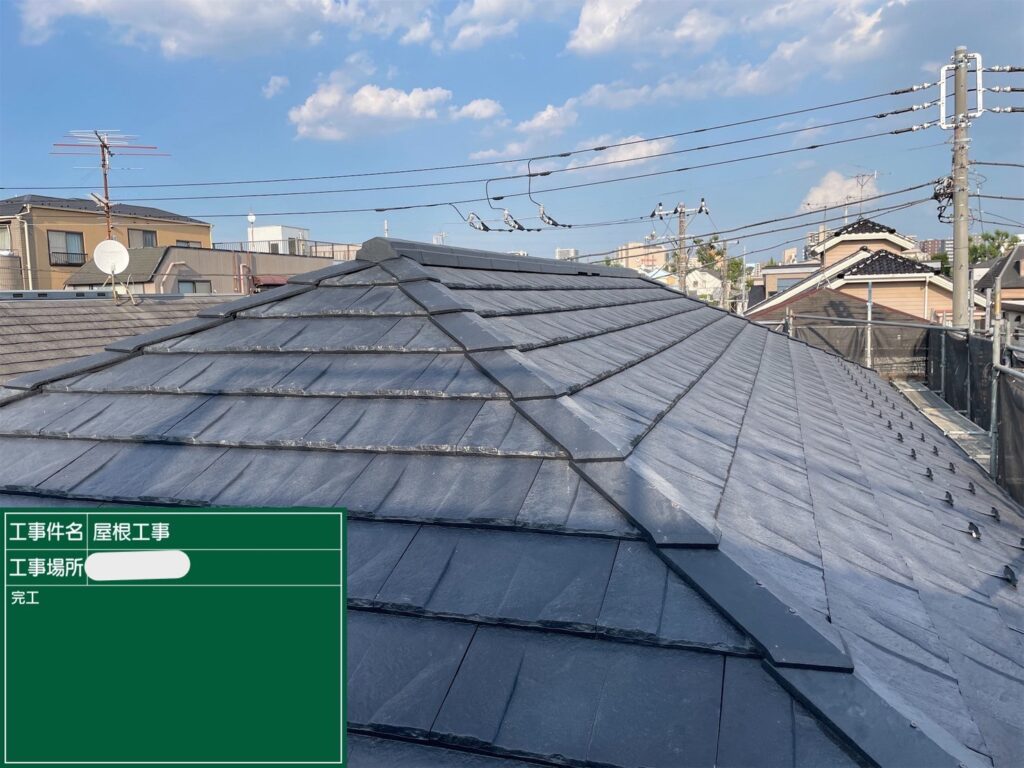 外壁塗装を検討していてお問い合わせいただきました。 屋根の葺き替え工事も同時に行うことで建物全体が一度に生まれ変わり、外観の美観も統一感のある仕上がり になりました。